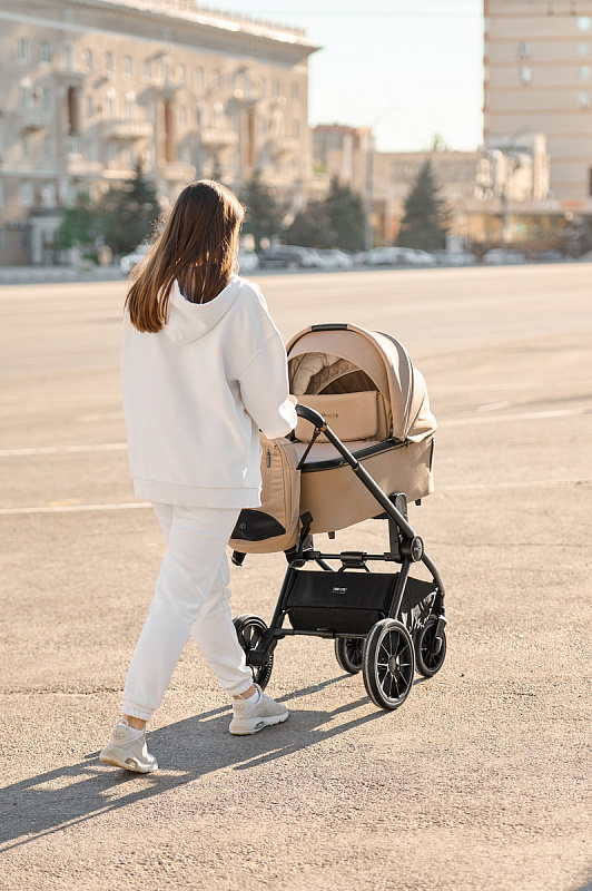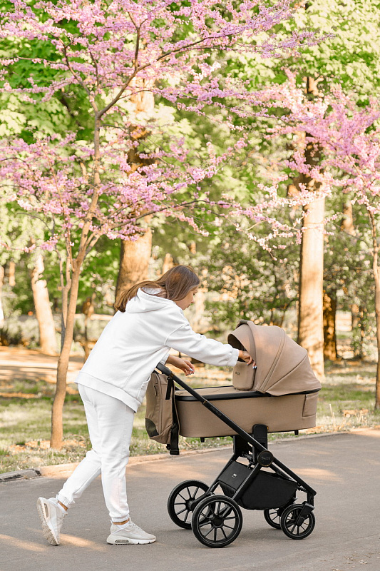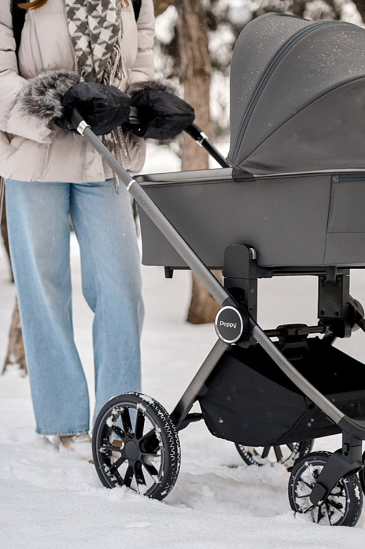 Детская коляска Peppy Monaco 3 в 1 с автокреслом Rise Milk Antrazit (графитовый), рама серая