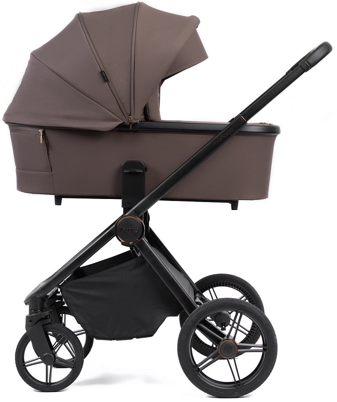 Детская коляска Peppy Monaco 3 в 1 с автокреслом Rise Milk Brownie коричневый, рама черная
