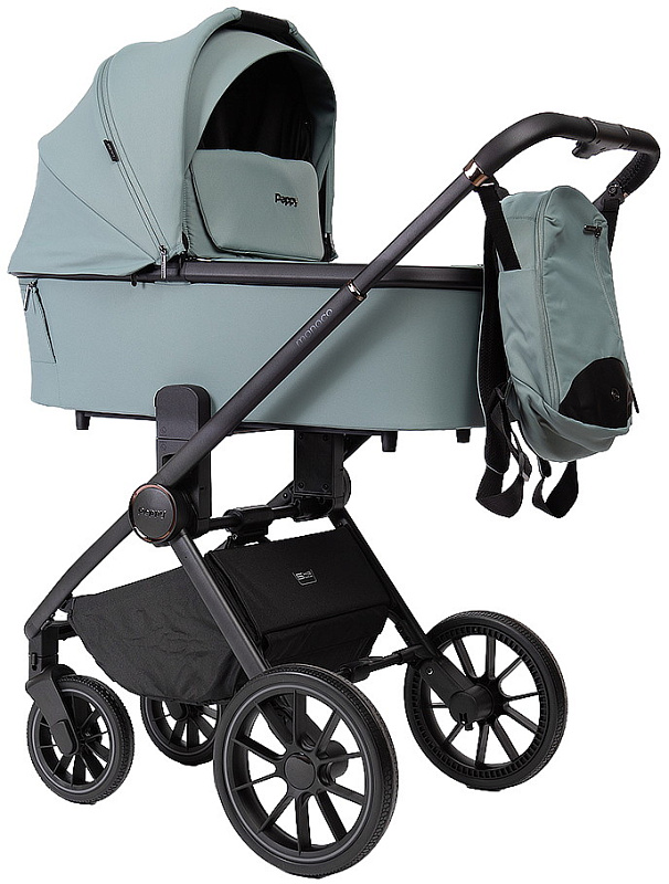 Детская коляска Peppy Monaco 3 в 1 с автокреслом Rise Milk Mint (мятный), рама черная