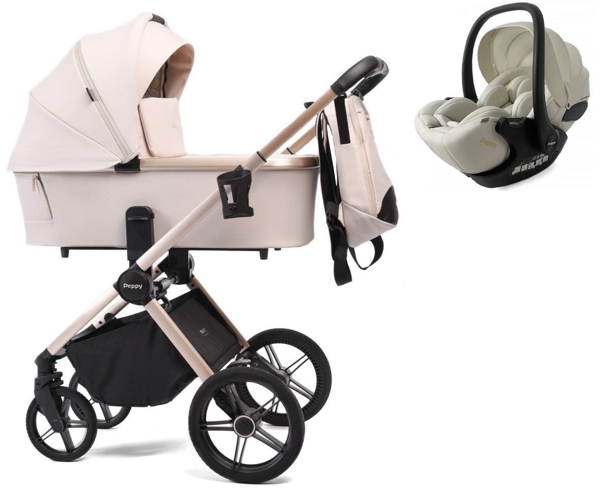 Детская коляска Peppy Monaco 3 в 1 с автокреслом Verona Beige Beige (бежевый), рама беж, шлифованный алюминий