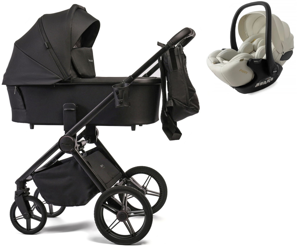 Детская коляска Peppy Monaco 3 в 1 с автокреслом Verona Beige Black (черный), рама черная матовая