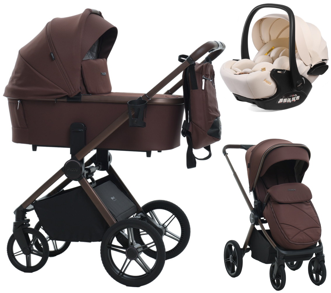 Детская коляска Peppy Monaco 3 в 1 с автокреслом Verona Beige Burgundy винный, рама коричневая