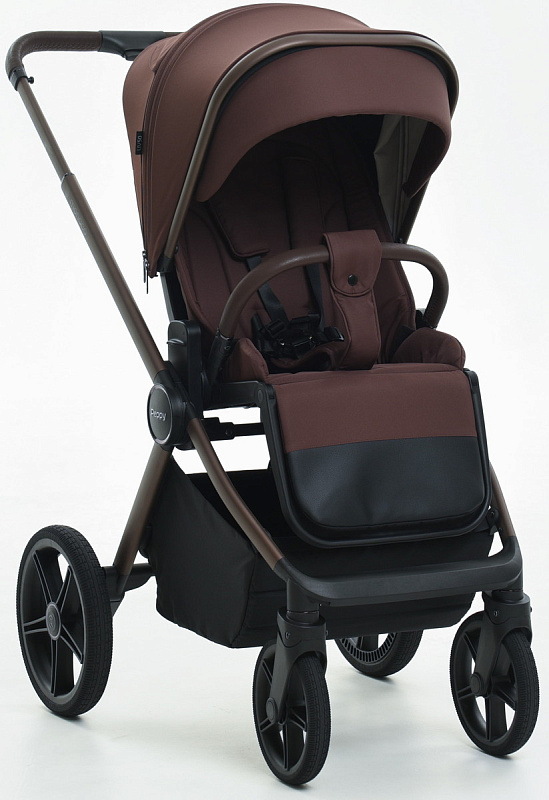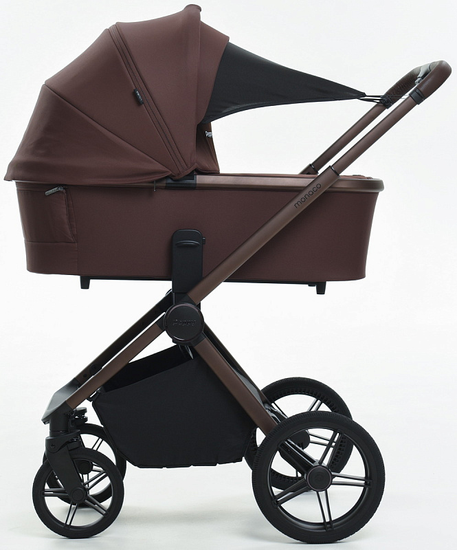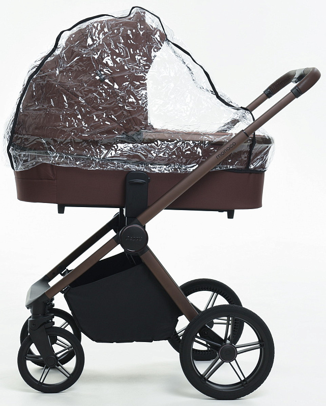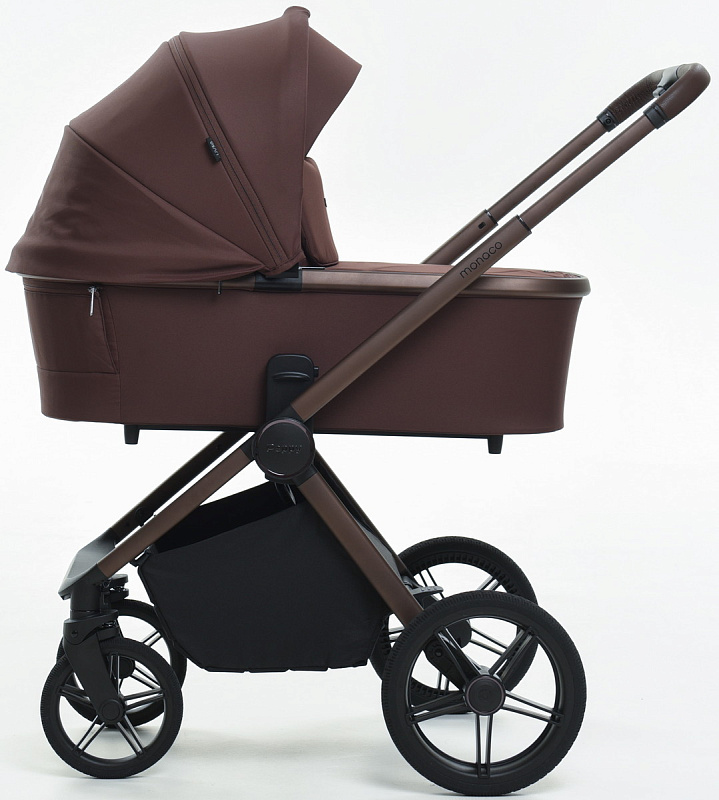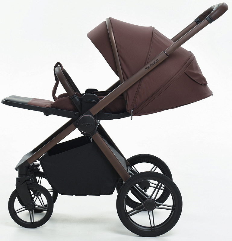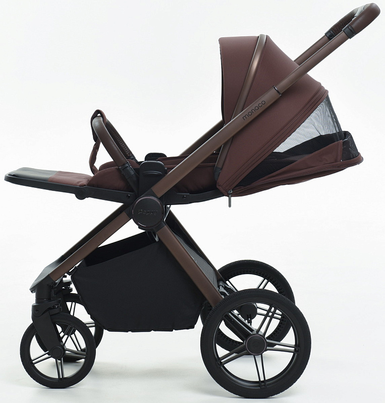 Детская коляска Peppy Monaco 3 в 1 с автокреслом Verona Black Burgundy винный, рама коричневая