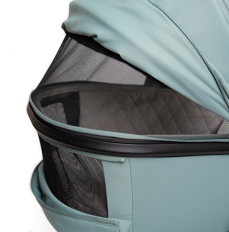 Для лучшей циркуляции воздуха в жаркие летние дни в капоре люльки и у изголовья есть москитная сетка, спрятанная под молнией