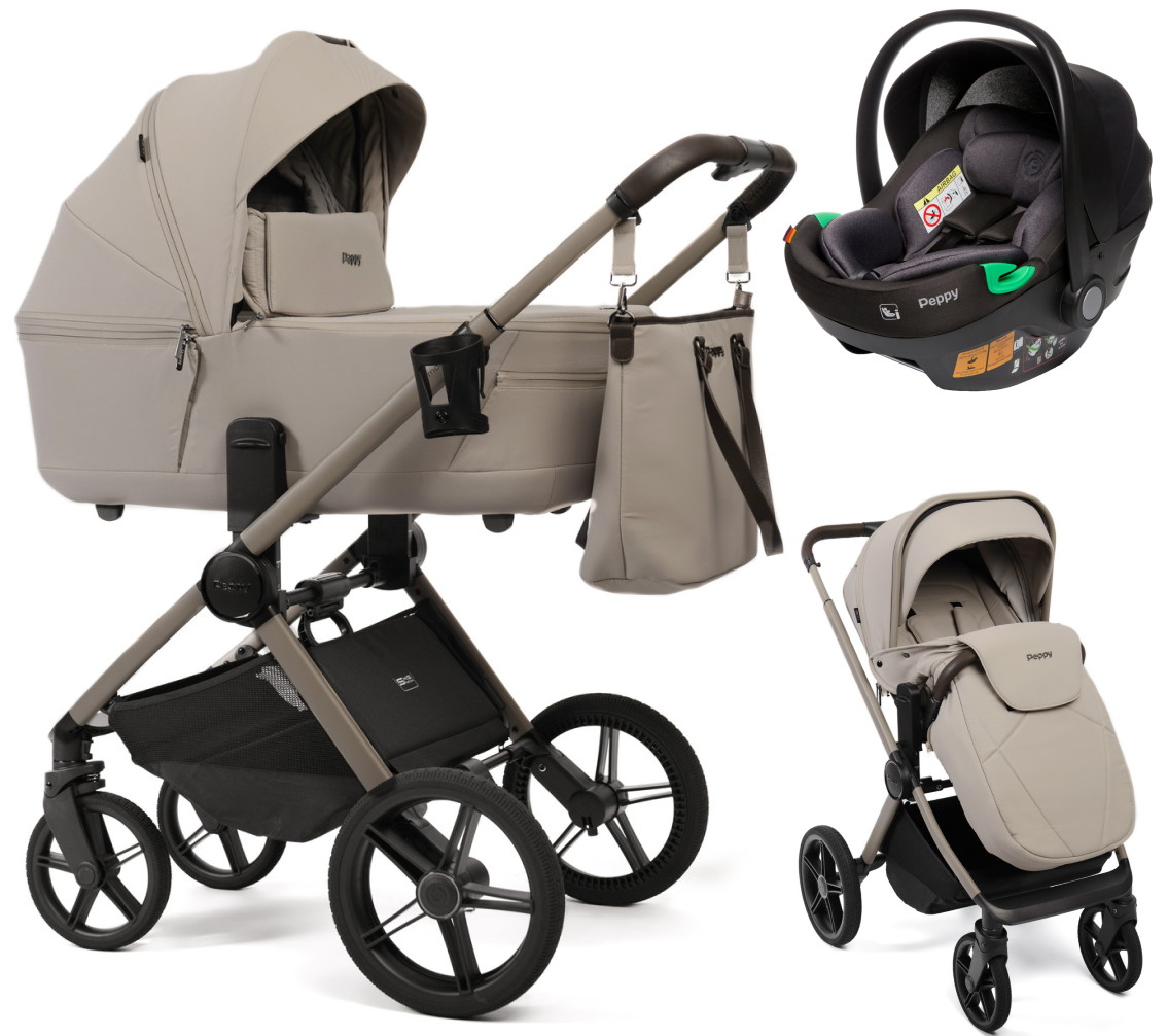 Детская коляска Peppy Monaco Thermo 3 в 1 с автокреслом First Latte (бежевый), рама бежевая