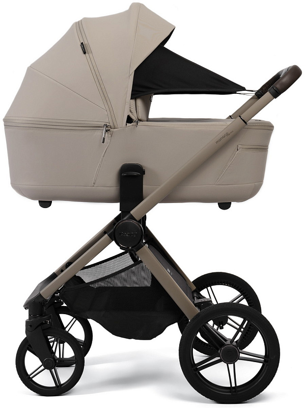 Устанавливается на раму коляски через специальные адаптеры. В