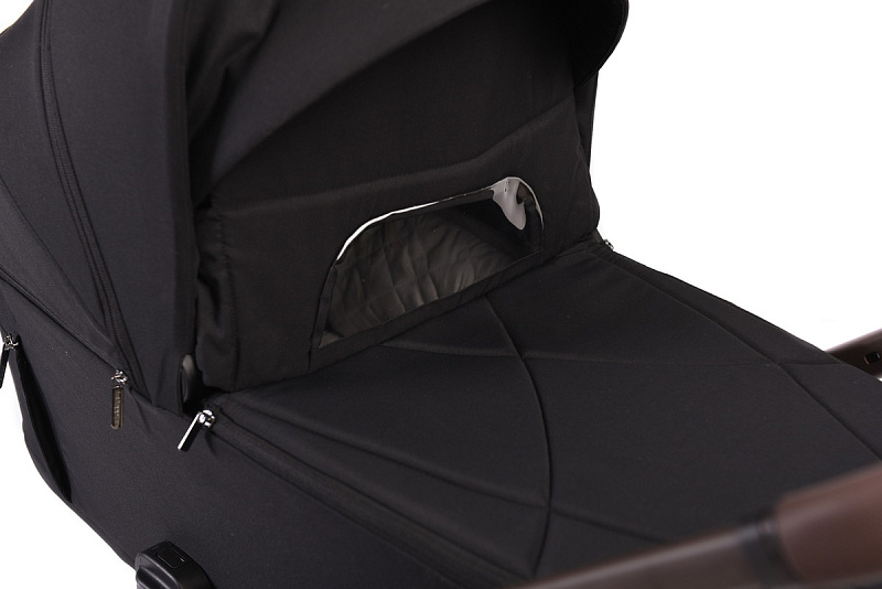 Для лучшей циркуляции воздуха в жаркие летние дни в капоре люльки, у изголовья и в ножках есть москитная сетка, спрятанная под молнией