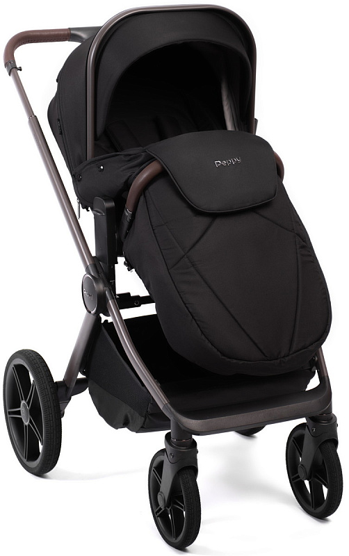 Детская коляска Peppy Soho 3 в 1 с автокреслом Rise Black Black (черный) рама шоколад