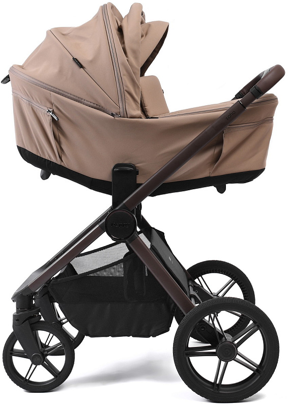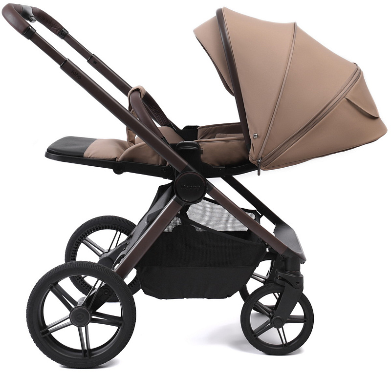 Детская коляска Peppy Soho 3 в 1 с автокреслом Rise Black Sand (песочный) рама шоколадНет оценокХарактеристики