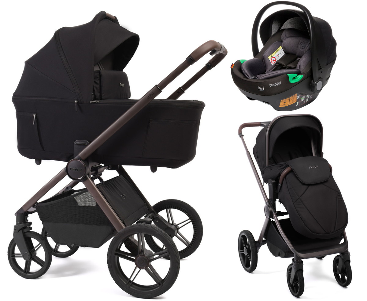 Детская коляска Peppy Soho 3 в 1 с автокреслом First Black (черный) рама шоколад