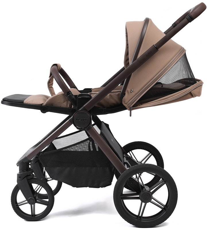 Детская коляска Peppy Soho 3 в 1 с автокреслом Rise Milk Sand (песочный) рама шоколадНет оценокХарактеристики