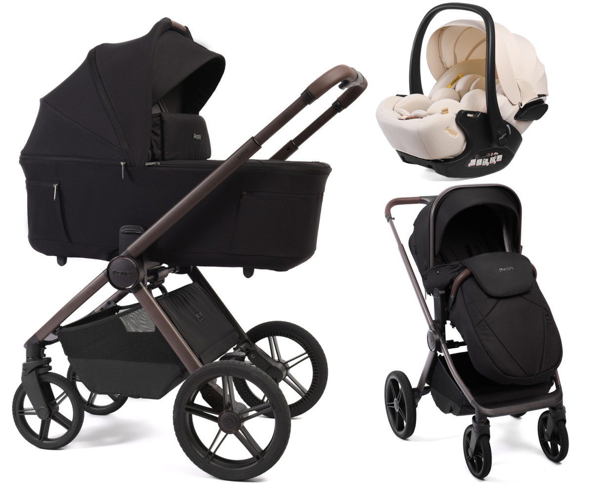 Детская коляска Peppy Soho 3 в 1 с автокреслом Verona Beige Black (черный) рама шоколадНет оценокХарактеристики