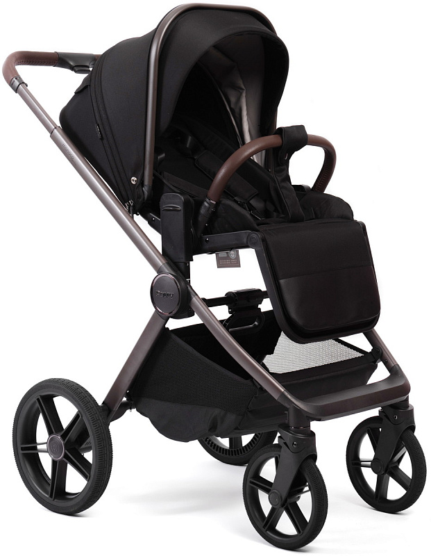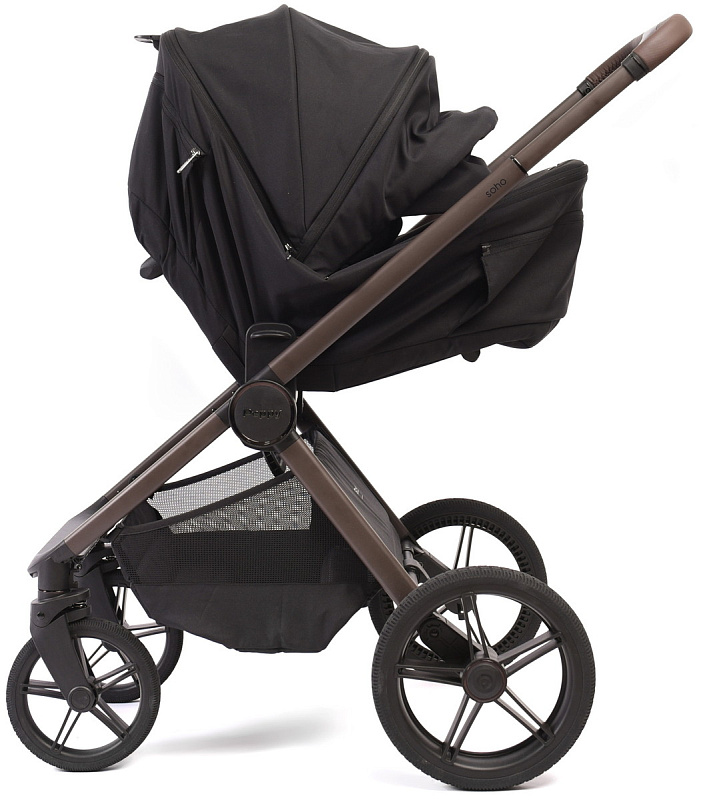 Детская коляска Peppy Soho 3 в 1 с автокреслом Verona Black Black (черный) рама шоколад