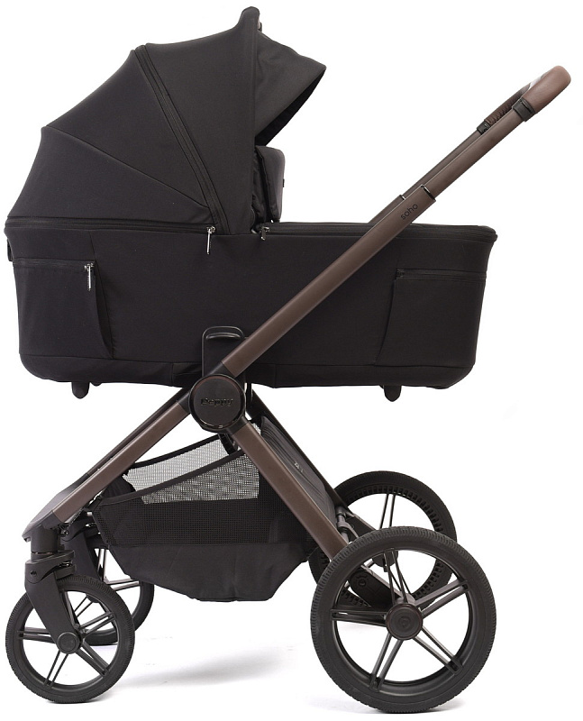 Детская коляска Peppy Soho 3 в 1 с автокреслом Verona Black Black (черный) рама шоколадНет оценокХарактеристики