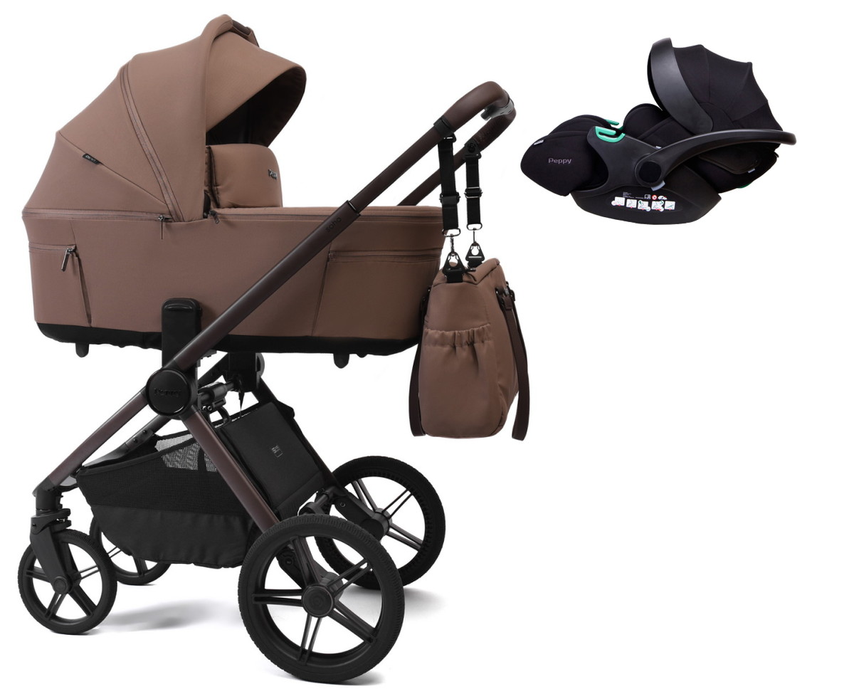 Детская коляска Peppy Soho 3 в 1 с автокреслом Verona Black Cappuccino (капучино) рама шоколадНет оценокХарактеристики