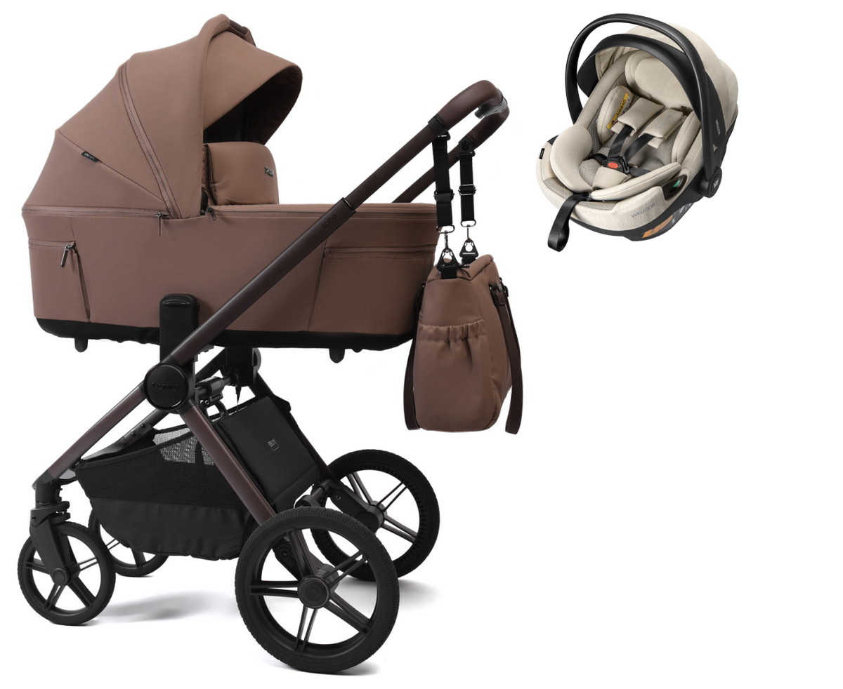 Детская коляска Peppy Soho 3 в 1 с автокреслом Welldon Crown 2 Cappuccino (капучино) рама шоколад