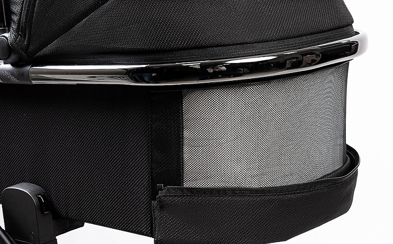 Для лучшей циркуляции воздуха в жаркие летние дни в капоре люльки и у изголовья есть москитная сетка, спрятанная под молнией
