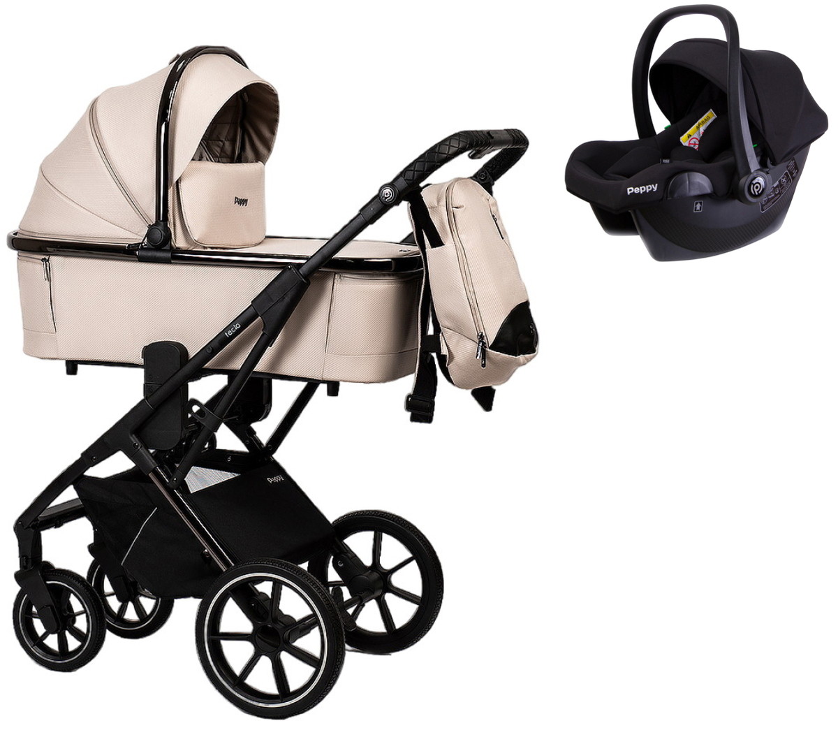 Детская коляска Peppy Tecla 3 в 1 с автокреслом Rise Stone Chrome Edition (Бежевый)