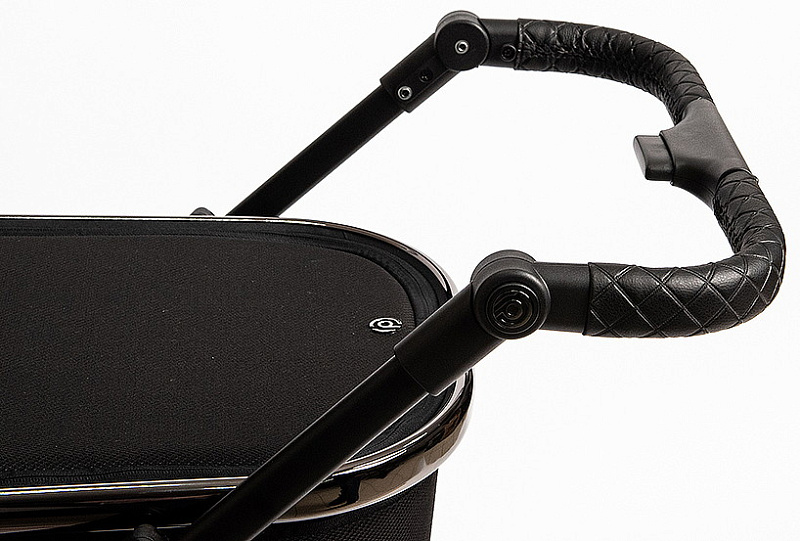 Шасси складывается нажатием на кнопку на ручке. Внимание! Складывание рамы с прогулочным блоком возможно только в положении «по ходу» движения.