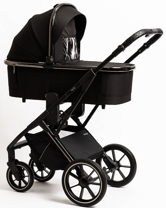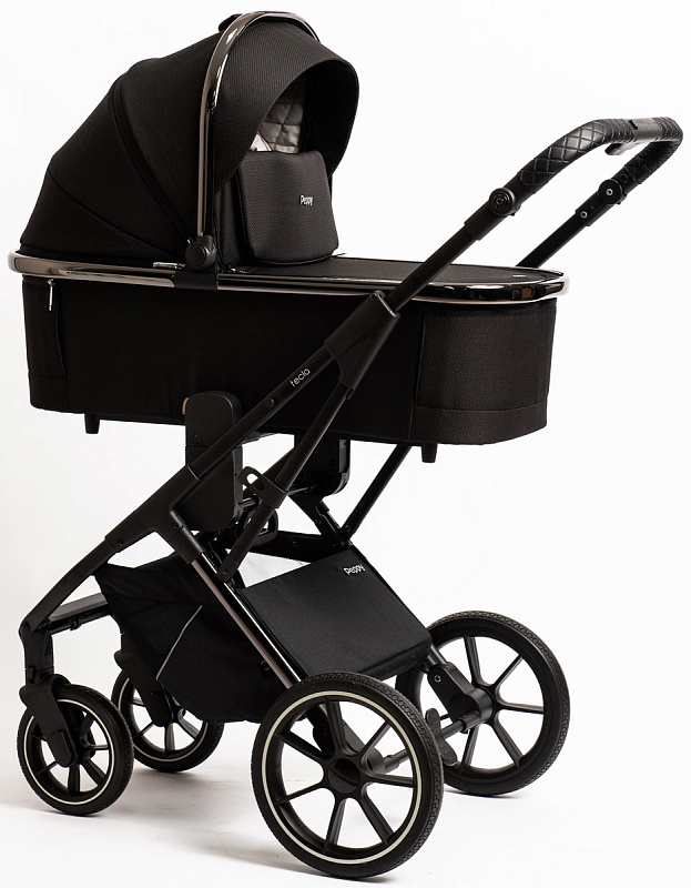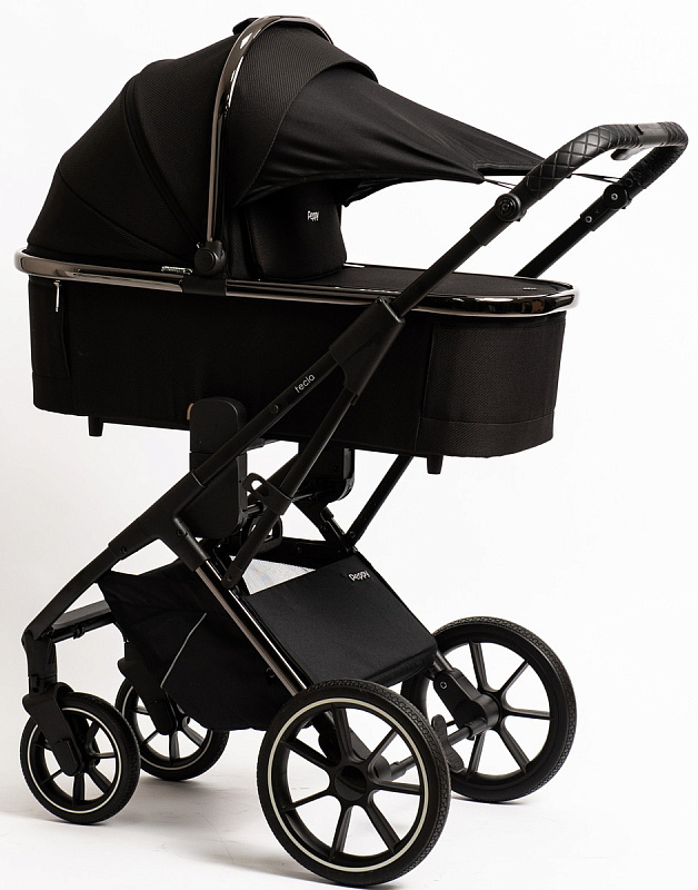 Детская коляска Peppy Tecla 3 в 1 с автокреслом First black Shadow Black Chrome Edition (Черный)