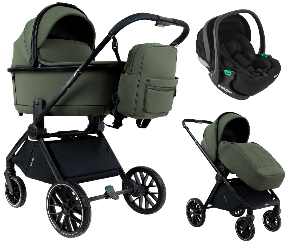Детская коляска Pituso Mayla Plus 3 в 1 с автокреслом Baesa Black Deep Green/Black