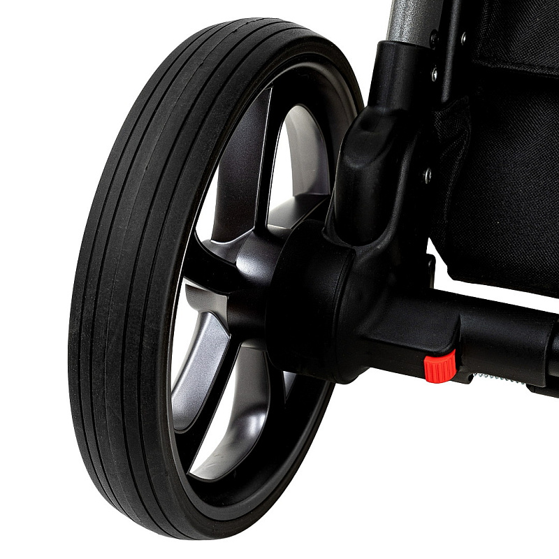 Всесезонные колеса не боятся проколов, перепадов температур и оснащены системой амортизации. Передние колеса являются плавающими с возможностью фиксации в положении "прямо". Технология Smart Absorbtion Systems, которая поглощает вибрации и удары, делает езду плавной и хорошо управляемой. Проходимость тоже на высоте!