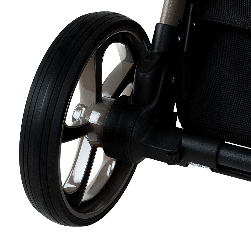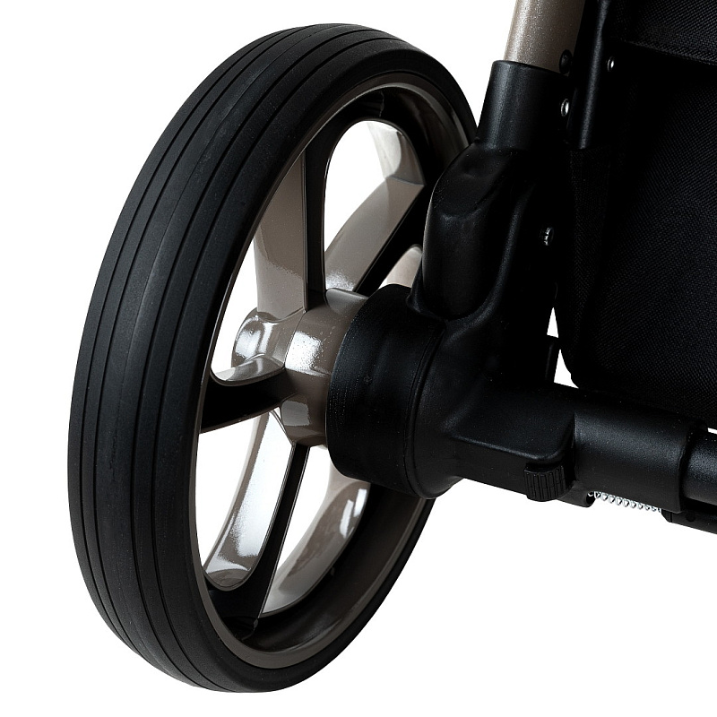 Всесезонные колеса не боятся проколов, перепадов температур и оснащены системой амортизации. Передние колеса являются плавающими с возможностью фиксации в положении "прямо". Технология Smart Absorbtion Systems, которая поглощает вибрации и удары, делает езду плавной и хорошо управляемой. Проходимость тоже на высоте!