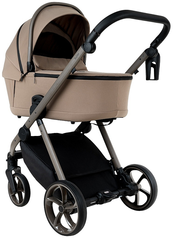 Оснащена эргономичной ручкой, встроенной в капюшон и обтянутой экокожей. С ее помощью спящего малыша вы сможете переносить без проблем