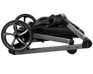 Рама складывается "книжкой" одним легким движением. Складывание возможно вместе с прогулочным блоком, независимо от того, каким способом он установлен. В сложенном виде коляска становится компактной, ее легко поместить в багажник или переносить с помощью транспортного ремня.