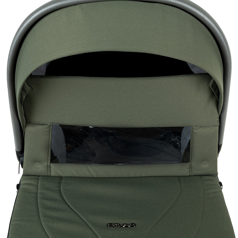 Капюшон опускается до бампера, имеет большое панорамное вентиляционное окно для притока воздуха летом. В прохладное время года поможет утепленная накидка на ножки.