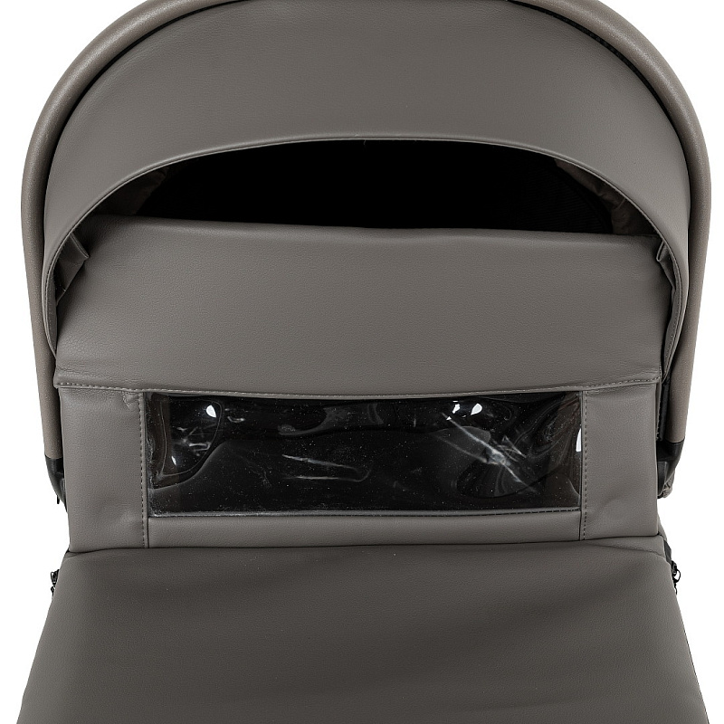 Оснащена эргономичной ручкой, встроенной в капюшон и обтянутой экокожей. С ее помощью спящего малыша вы сможете переносить без проблем