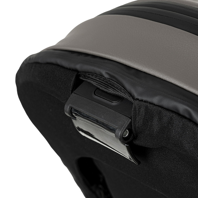 Безопасность обеспечивается пятиточечными ремнями с магнитным замком и откидным бампером.