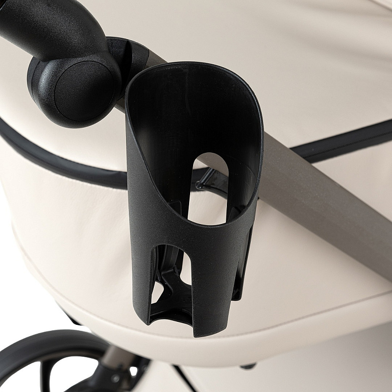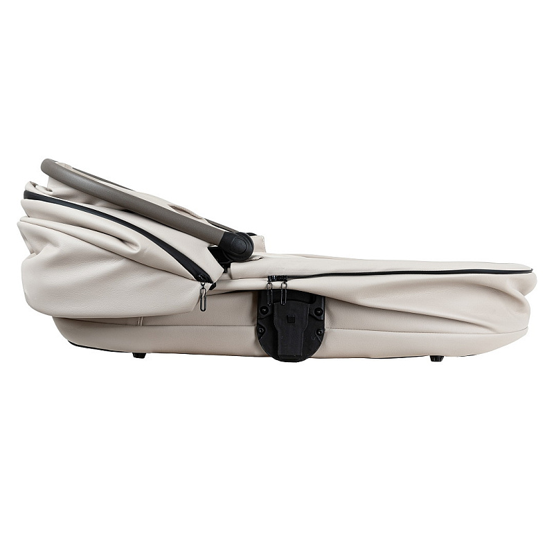 Оснащена эргономичной ручкой, встроенной в капюшон и обтянутой экокожей. С ее помощью спящего малыша вы сможете переносить без проблем
