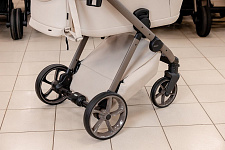 Рама складывается "книжкой" одним легким движением. Складывание возможно вместе с прогулочным блоком, независимо от того, каким способом он установлен. В сложенном виде коляска становится компактной, ее легко поместить в багажник или переносить с помощью транспортного ремня.
