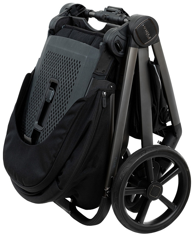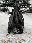 Устанавливается на раму как по ходу, так и против хода движения коляски, компактно складывается вместе с рамой коляски при любом направлении его установки на раме.