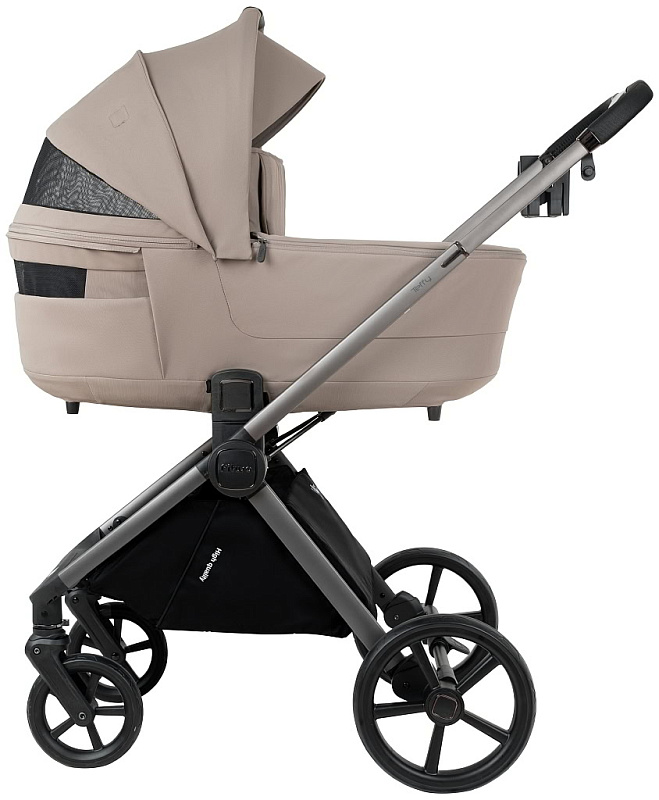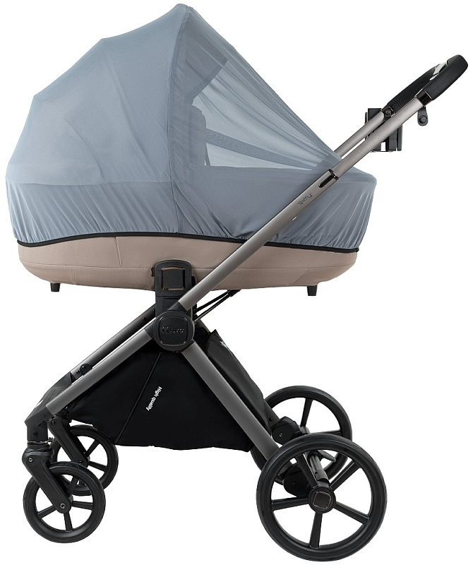 Корпус люльки изготовлен из плотного многослойного текстиля, обладает водоотталкивающим эффектом и защитой от ультрафиолетовых лучей spf 50.