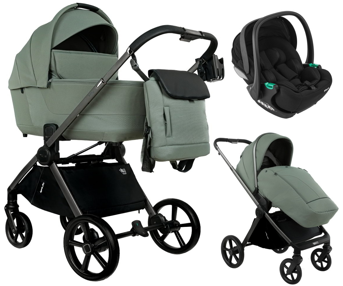 Детская коляска Pituso Teffy 3 в 1 с автокреслом Baesa Black Sage Green/Graphite