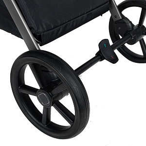 Прочная и лёгкая алюминиевая рама с телескопической регулировкой высоты родительской ручки в четырёх положениях и спаренным тормозом.