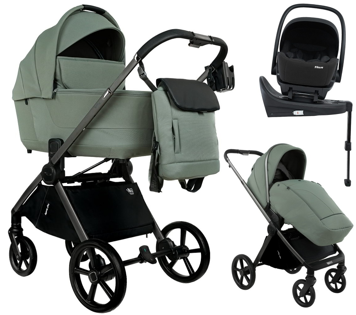 Детская коляска Pituso Teffy 4 в 1 с автокреслом Baesa Black с базой Sage Green/Graphite