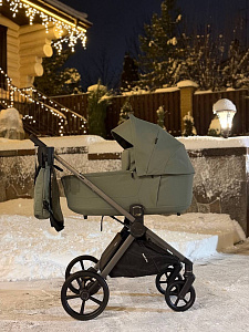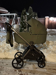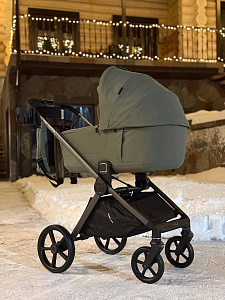 Капор люльки оборудован ручкой для переноски, имеется съемный козырек, дополнительная секция, климатическое окно под молнией в корпусе люльки и в капюшоне.