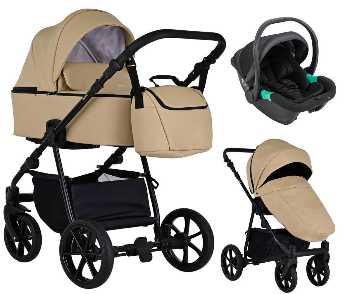 Детская коляска Pituso Tossa Кожа 3 в 1 с автокреслом Santiso Pro Black TS/25/6 Camel