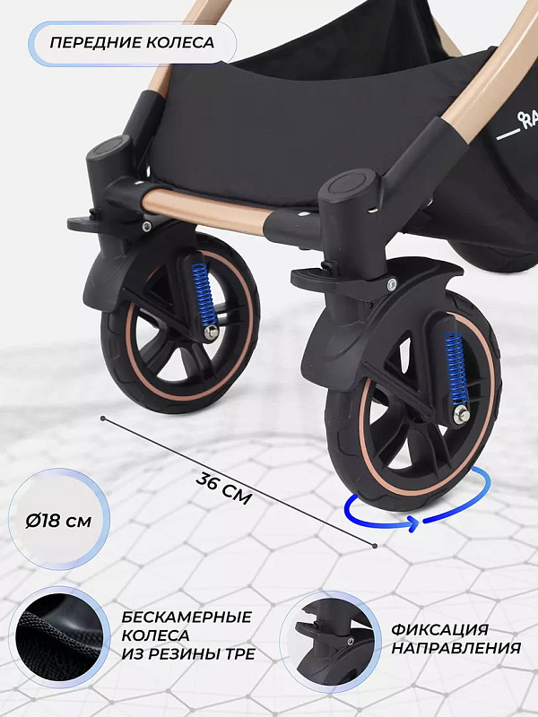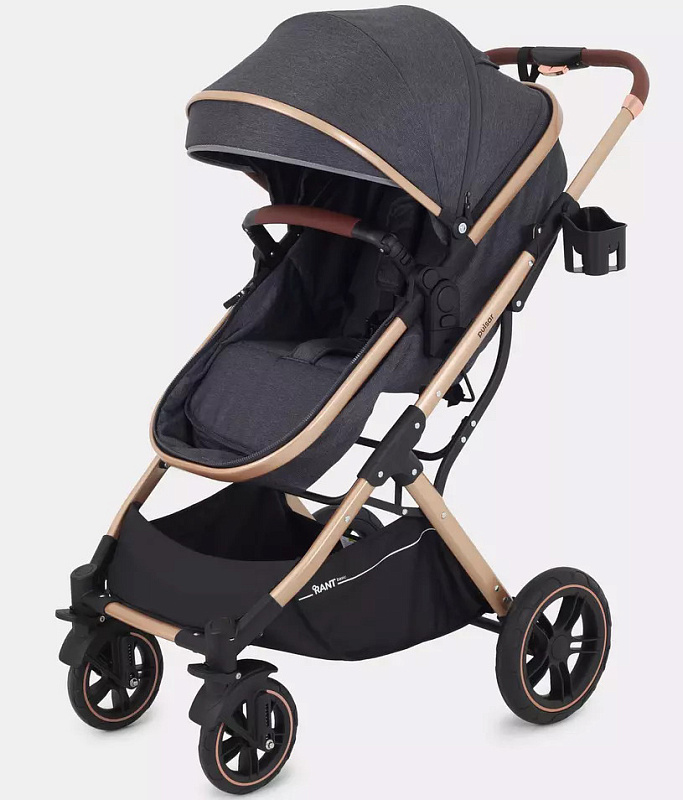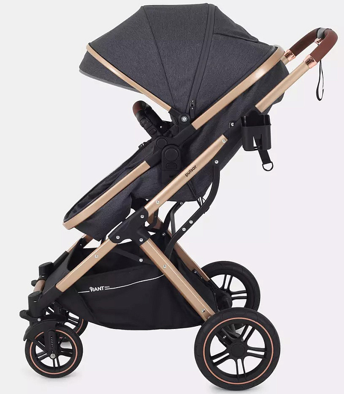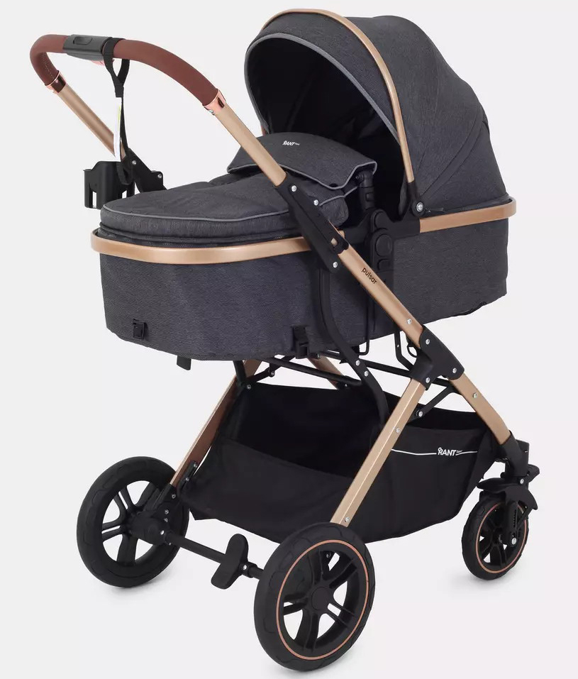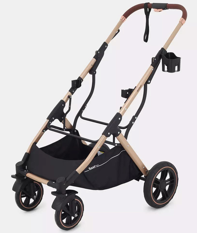 Детская коляска-трансформер Rant basic Pulsar Gold - эргономичная и вместительная! Особенности модели: трансформация в два движения; реверсивный блок; подстаканник для любимых напитков; тормоз-"качелька", не пачкающий обувь.