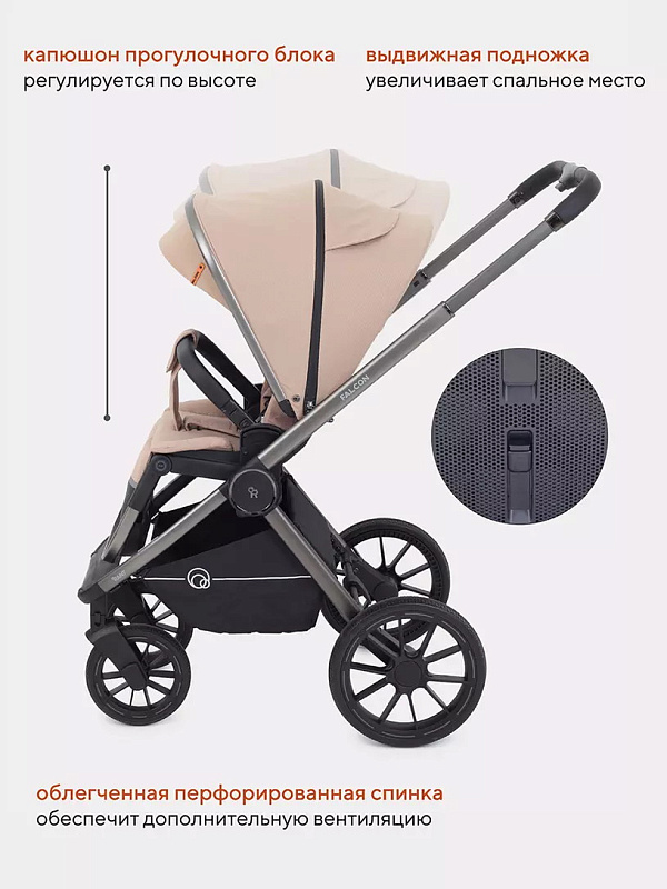- еще одна фишка модели - капюшон прогулочного блока регулируется по высоте, чтобы высокому ребенку было комфортно;