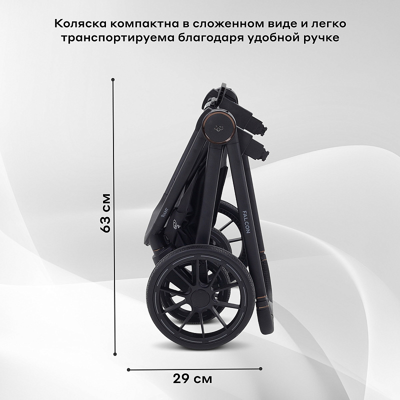 коляска компактна в сложенном виде и легко транспортируема благодаря удобной ручке