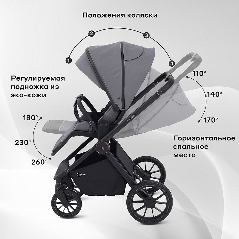 Обновленную флагманскую модель с современной начинкой и концептуальным дизайном по достоинству оценят молодые прогрессивные родители. Детская коляска RANT FALCON NEO 3 в 1 покорит вас: регулировкой блоков по высоте; быстросъемными блоками с памятью кнопок; регулировкой капюшона в прогулочном блоке по высоте; складной люлькой для хранения и транспортировки; трендовой палитрой цветов вкупе с премиальной тканью