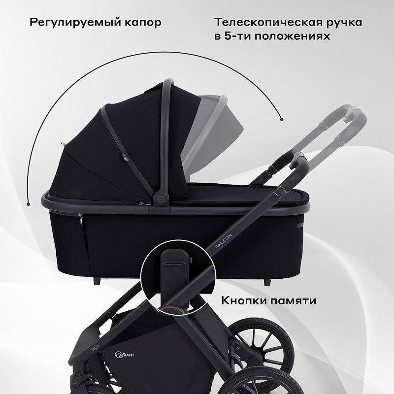 Обновленную флагманскую модель с современной начинкой и концептуальным дизайном по достоинству оценят молодые прогрессивные родители. Детская коляска RANT FALCON NEO 3 в 1 покорит вас: регулировкой блоков по высоте; быстросъемными блоками с памятью кнопок; регулировкой капюшона в прогулочном блоке по высоте; складной люлькой для хранения и транспортировки; трендовой палитрой цветов вкупе с премиальной тканью