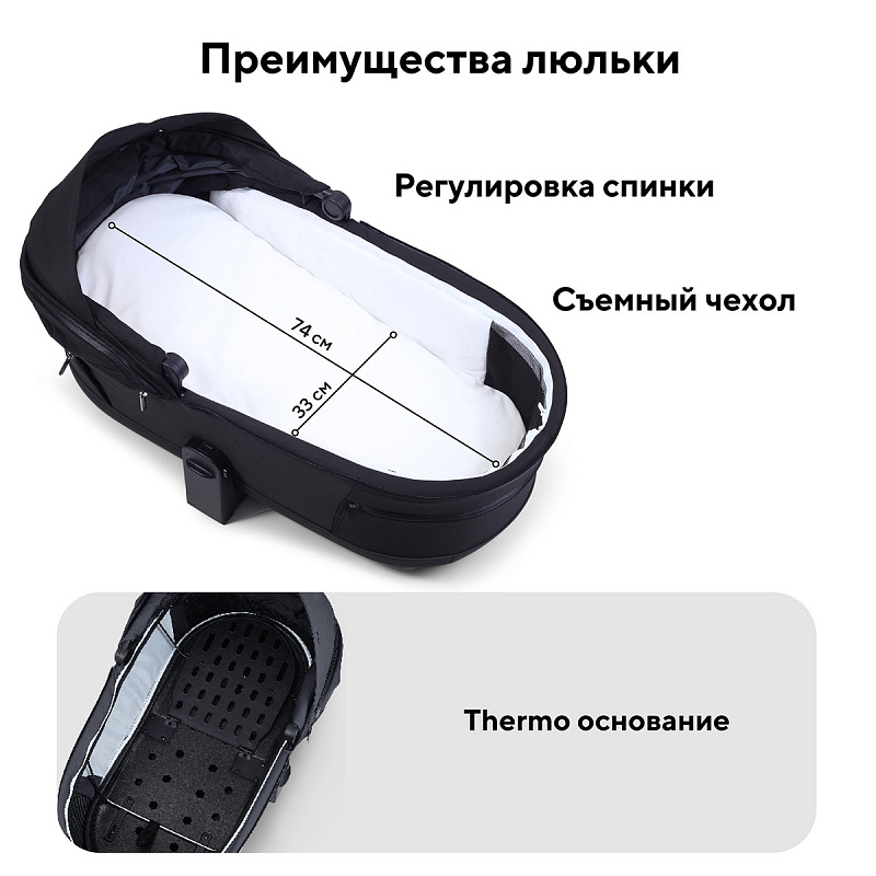Термолюльку с облегченным дном из специального материала. Легкость установки и переноски, возможность использования в качестве временной кроватки. Термодно создает оптимальный микроклимат для ребенка в любое время года: летом – прохладу и циркуляцию воздуха, зимой – защиту от холода и сохранение тепла. Прочное дно гарантирует безопасность во время прогулок.