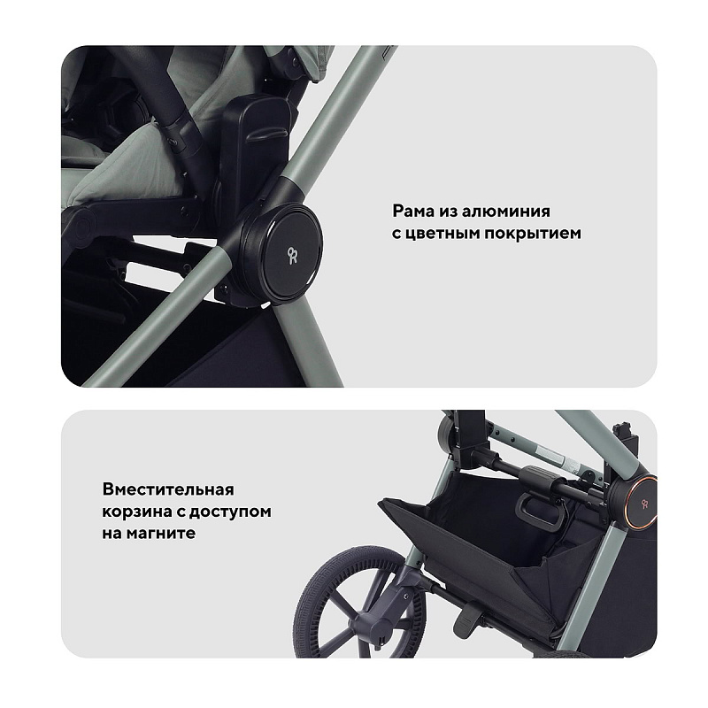 Модульность: в комплекте — люлька для новорождённого и прогулочный блок. Оба блока легко снимаются и устанавливаются. На раму возможно установить автокресло группы 0+ (адаптация без лишних усилий), что делает поездки более удобными и безопасными.