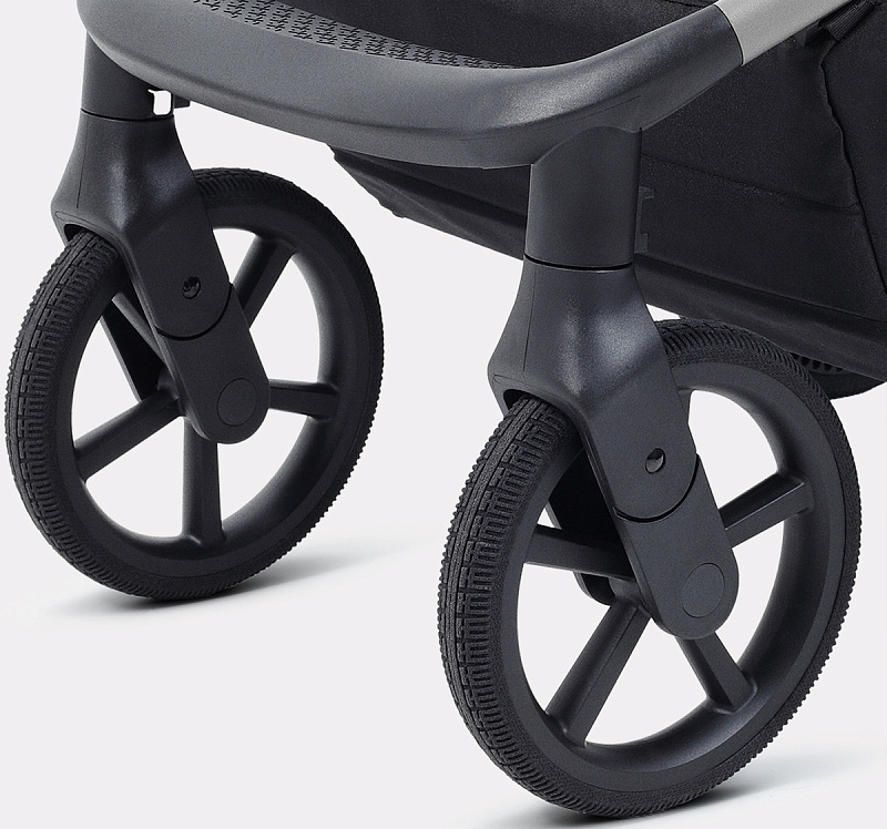 Супермягкая амортизация: коляска «плывёт по дороге», помогая продлить сон ребёнка на улице и делая управление лёгким и приятным.