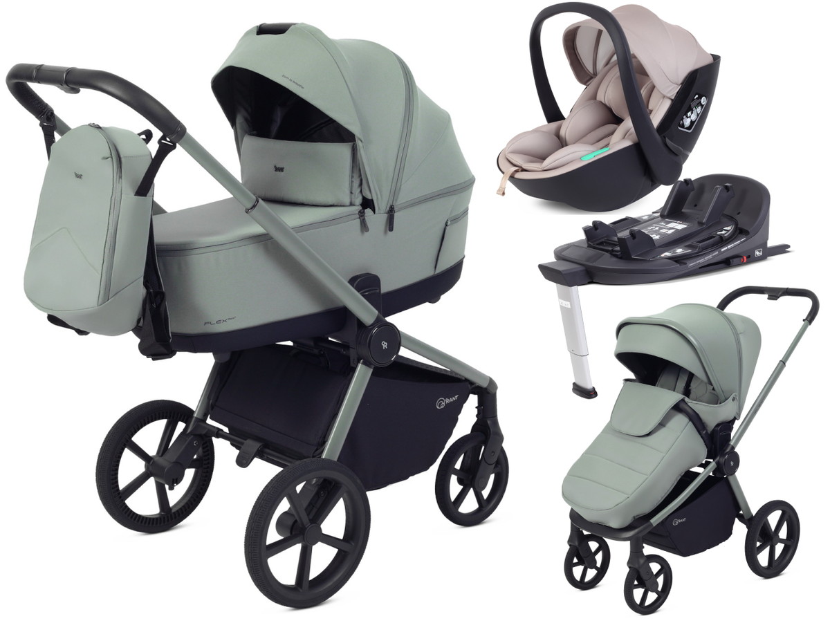 Детская коляска Rant Flex Therm Soft 4 в 1 с автокреслом Miro Beige и базой Forest Green